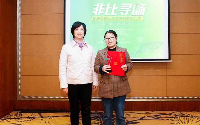 經(jīng)過激烈的角逐,最后來自江蘇省省級機關醫(yī)院的選手尹冬華奪得了冠軍獲得專家評審團的一致認可,成功奪得“非比尋腸”首屆長安心病例故事大賽華東區(qū)決賽冠軍,從本次大會主席周衛(wèi)紅主任手中接過了頒發(fā)的獎狀。