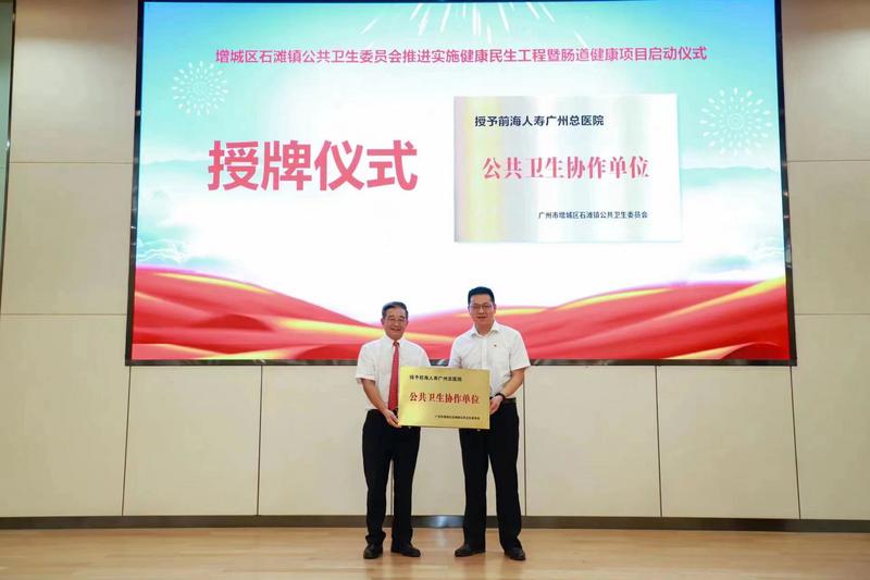 7月26日,廣州市增城區(qū)石灘鎮(zhèn)在前海人壽廣州總醫(yī)院舉行增城區(qū)石灘鎮(zhèn)公共衛(wèi)生委員會(huì)推進(jìn)實(shí)施健康民生工程暨腸道健康項(xiàng)目啟動(dòng)儀式,正式拉開了石灘鎮(zhèn)常住適齡人群腸道健康檢查項(xiàng)目的序幕。